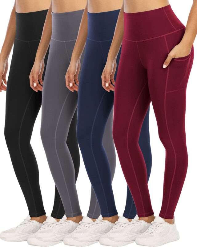 4 Pack Leggings with Pockets for Women,High Waist Tummy Control Workout Yoga Pants